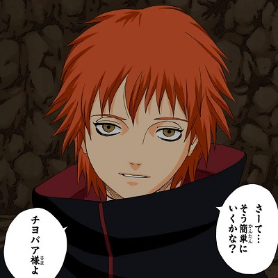 Сасори со своими марионетками запрыгнул на дерево в трёх метрах от себя. Дерево достаточное толстое, дабы выдержать вес Сасори и кукол. Скинув с себя плащ акацуки. Марионетка Хируко бежит в точку, что находится по диагонали влево-сзади, в трёх метрах от Кисаме, в обход волны(Если она ещё есть на поле боя).